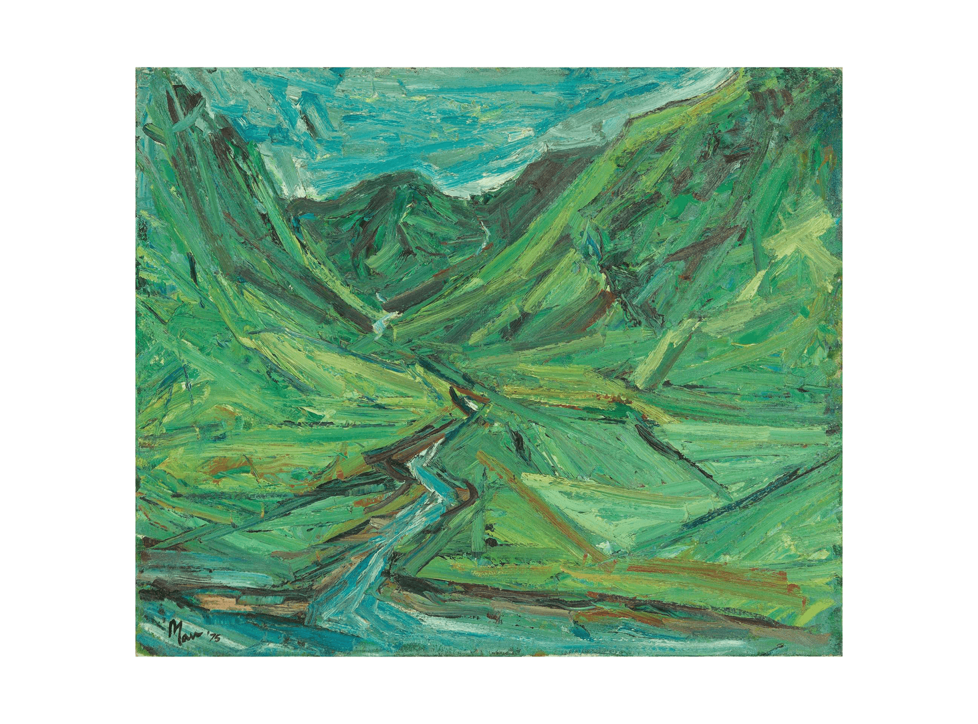 Art in interior design can play a pivotal role. It is not just a decorative element; it can evoke a constellation of emotions and breathe life into a room to generate a cohesive and dynamic environment. One important element to consider is scale. This unframed piece by Leslie Marr is almost a metre wide. By no means does bigger mean better, but it is worth considering that a larger piece of art can offer significant impact and should be placed in an area that can present it with the power that it deserves. For example, exhibited above a fireplace, in between floor to ceiling windows, or hanging on a picture chain from a dado rail in a vast stairwell are but some options. But there is also an argument that flaunting a large piece of art in a smaller room can become an invitation to enter the panoramic scene that now dominates such a room. Using art as a focal point in this way can create a strong visual anchor and has the ability to transform a space into what can feel like a daydream.